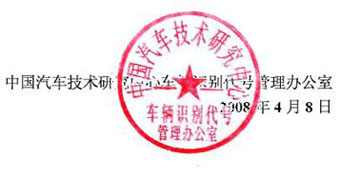 关于中国汽车技术研究中心车辆识别代号管理办公室