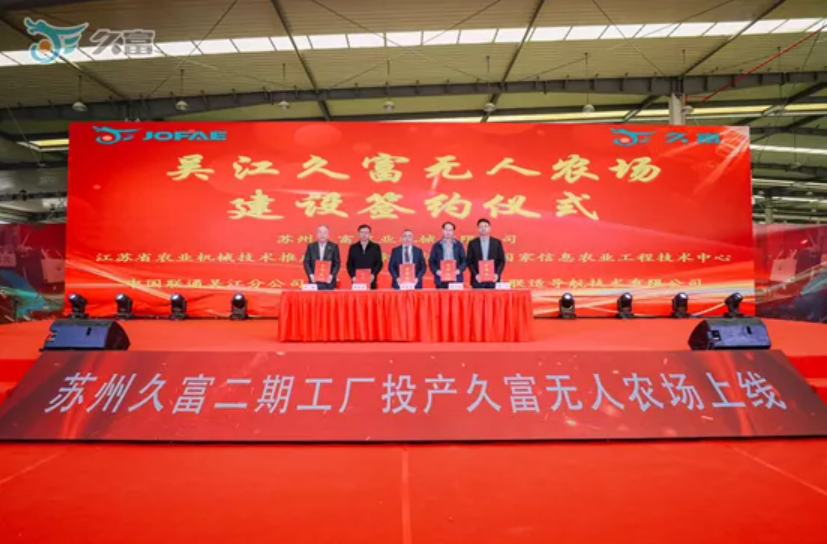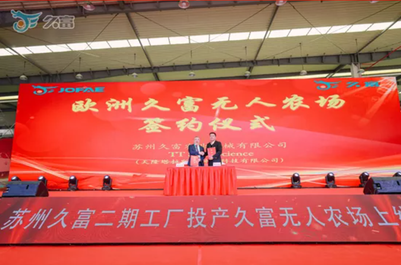 二期投产庆典中举行了吴江久富无人农场上线启动仪式、无人农场签约仪式、欧州久富无人农场的建设的签约、二期工厂参观、无人农场作业观摩系列活动。