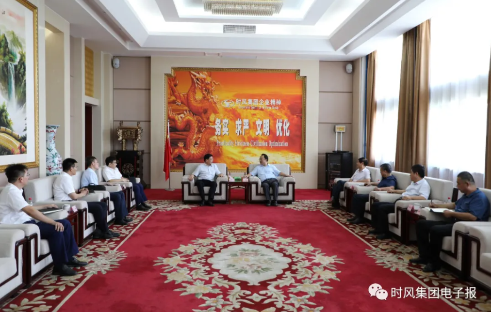 8月26日,交通银行山东省分行党委委员、副行长赵秀军一行走访时风集团。高唐县副县长姜建国,县审计局局长程庆江,时风集团董事长、党委书记刘成强,副总经理刘英亮,总经理助理、财务处处长何化新等陪同。赵秀军副行长与刘成强董事长在五楼会议室进行亲切交谈。