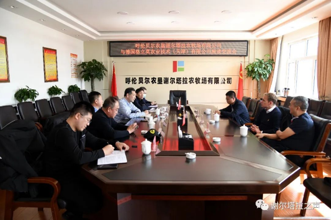 4月12日上午,呼伦贝尔农垦集团党委副书记、董事王金河,农机科技部副部长李新民、弭宪柱陪同格立莫中国区总经理Thomas Stolte(托马斯)一行到谢尔塔拉农牧场有限公司座谈交流。谢尔塔拉农牧场有限公司党委书记、董事长张满泽,党委副书记、董事、副总经理郭祥金及相关部门负责人参加座谈。