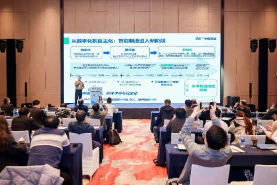 国家智能制造专家委员会委员、中国机械工业集团有限公司首席专家朱恺真作“未来智能工厂及其应用场景探讨”主题报告,研判未来智能工厂的变革趋势与核心特征,提出未来智能工厂要打造“数据驱动+工业知识”的智能优化闭环,实现快速感知、敏捷响应、动态优化和全局智能协同。