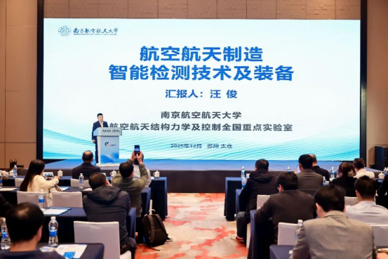 国家智能制造专家委员会委员、南京航空航天大学机电学院副院长汪俊作“航空航天制造智能检测技术及装备”主题报告,他认为智能检测是实现质量数据闭环、驱动生产精准优化的关键使能技术,面对新型航空装备高质量制造与快速研制批产需求,迫切要求我们加快研制航空航天智能检测装备、智能检测分析工业软件等提升支撑能力。