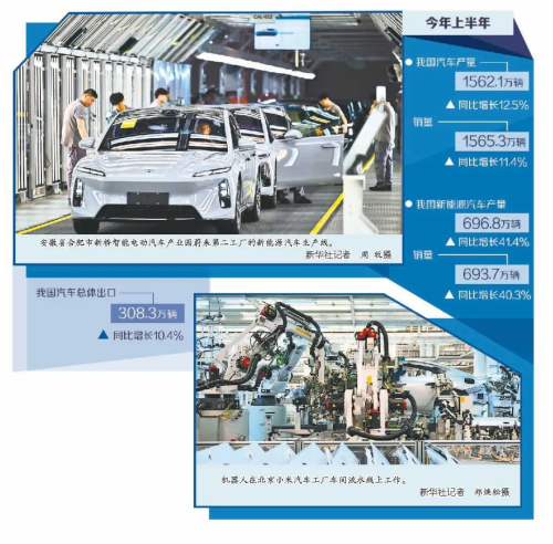 今年上半年,我国汽车产销量分别完成1562.1万辆和1565.3万辆,同比分别增长12.5%和11.4%。这是我国汽车历史上同期产销首次双超1500万辆。