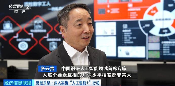 中国钢研人工智能领域首席专家 张云贵:在一个企业之内,人这个要素互相的知识水平相差都非常大,大模型时代带来一个革命性的变化,就是会弥补这个鸿沟。我们通过大模型把能力输送给产线工人后,产线工人的反馈,会回过头来优化我们大模型,共同迭代、共同成长的新模式。